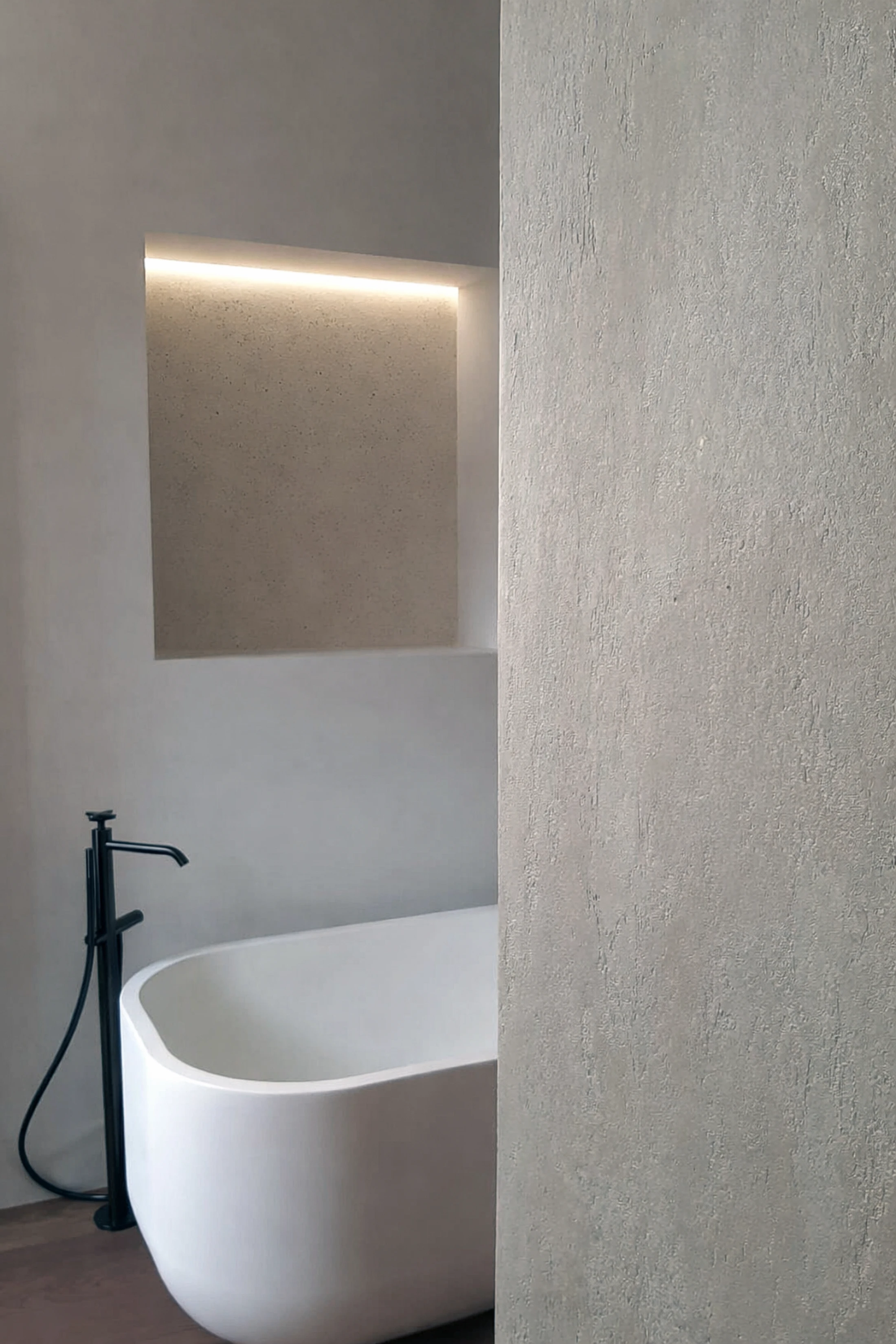 Le superfici, materiche e vibranti alla luce, avvolgono le grandi pareti lisce con sfumature profonde e leggere variazioni cromatiche. La texture viva dell’ ARGILLA , crea un raffinato contrasto con la precisione dei volumi, donando agli ambienti profondità, armonia e una percezione sensoriale autentica.